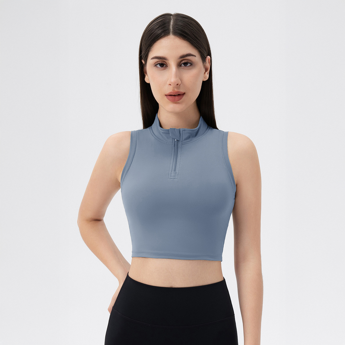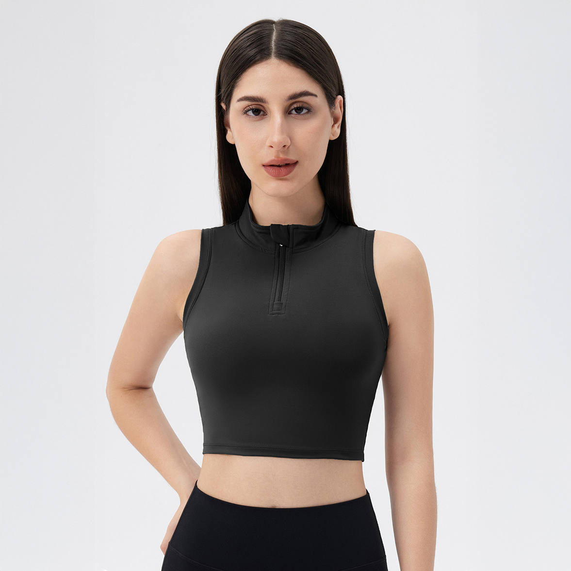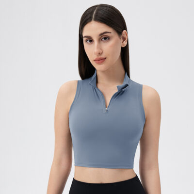The Aurora Zip Bra Top is a stylish, functional and comfortable half-zip bra tank top that is tight fitted, soft and high-stretch, guaranteed to help you stay cute while moving!