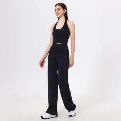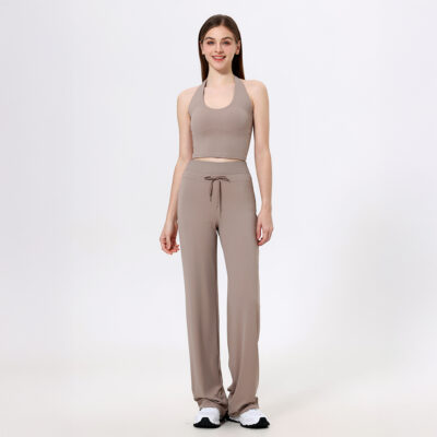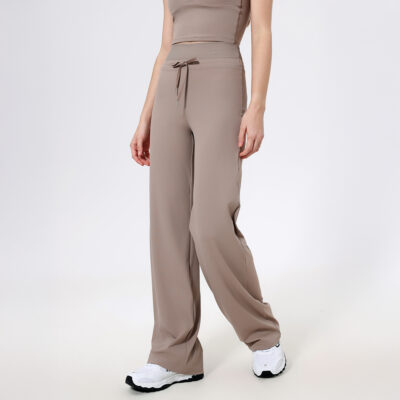 - High-waisted design with an elastic waistband and drawstring below for adjustability