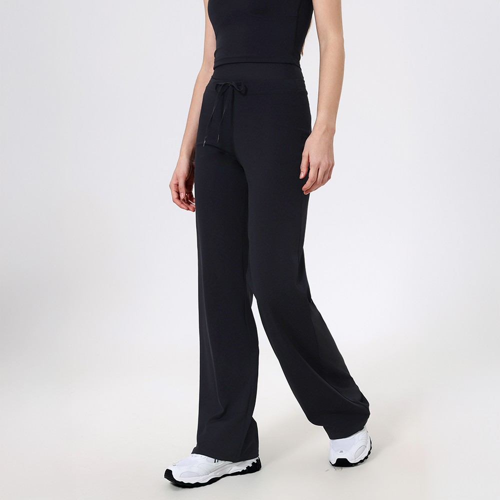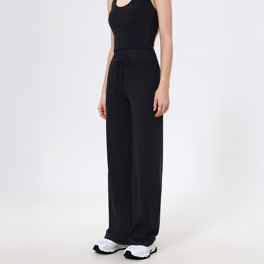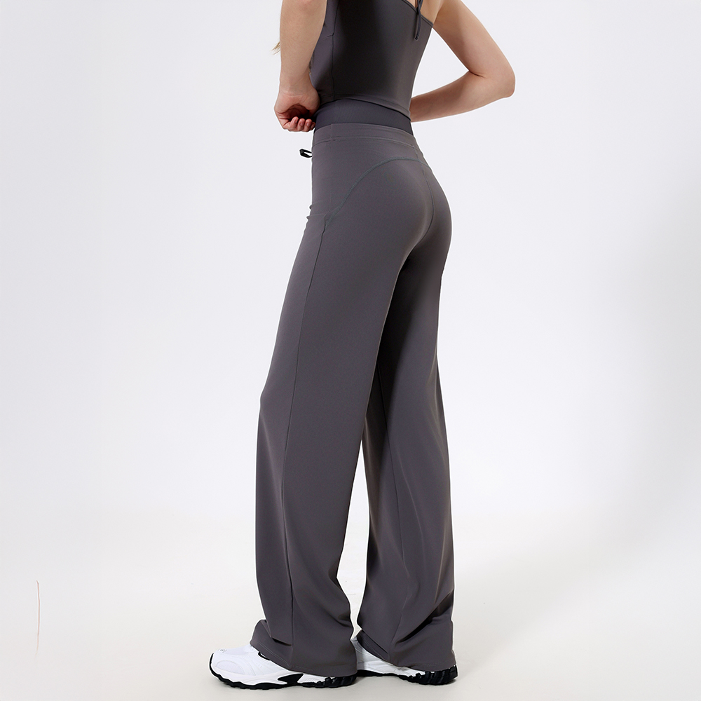 - High-waisted design with an elastic waistband and drawstring below for adjustability