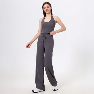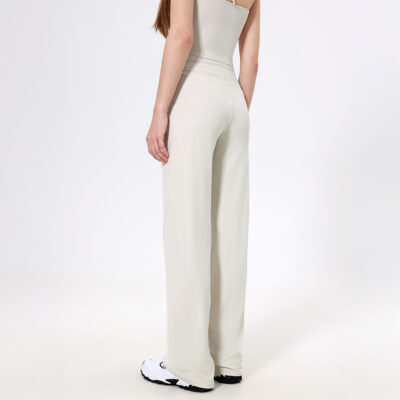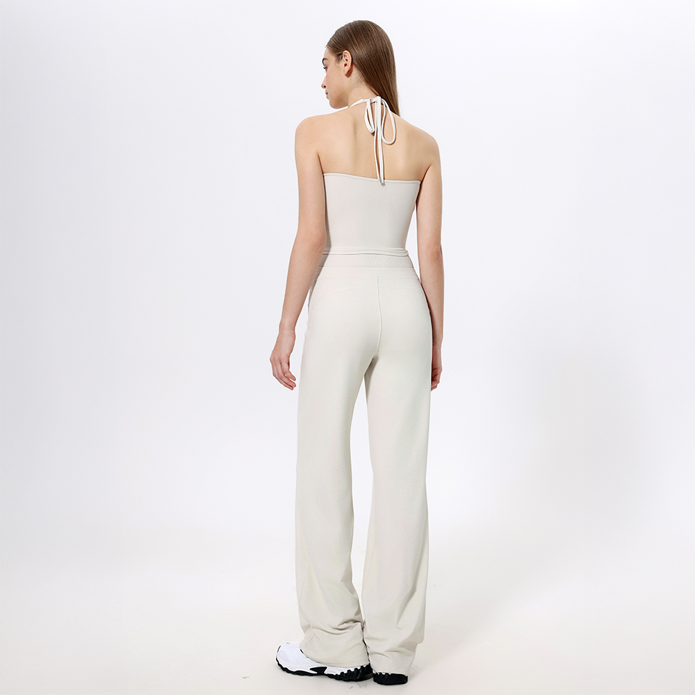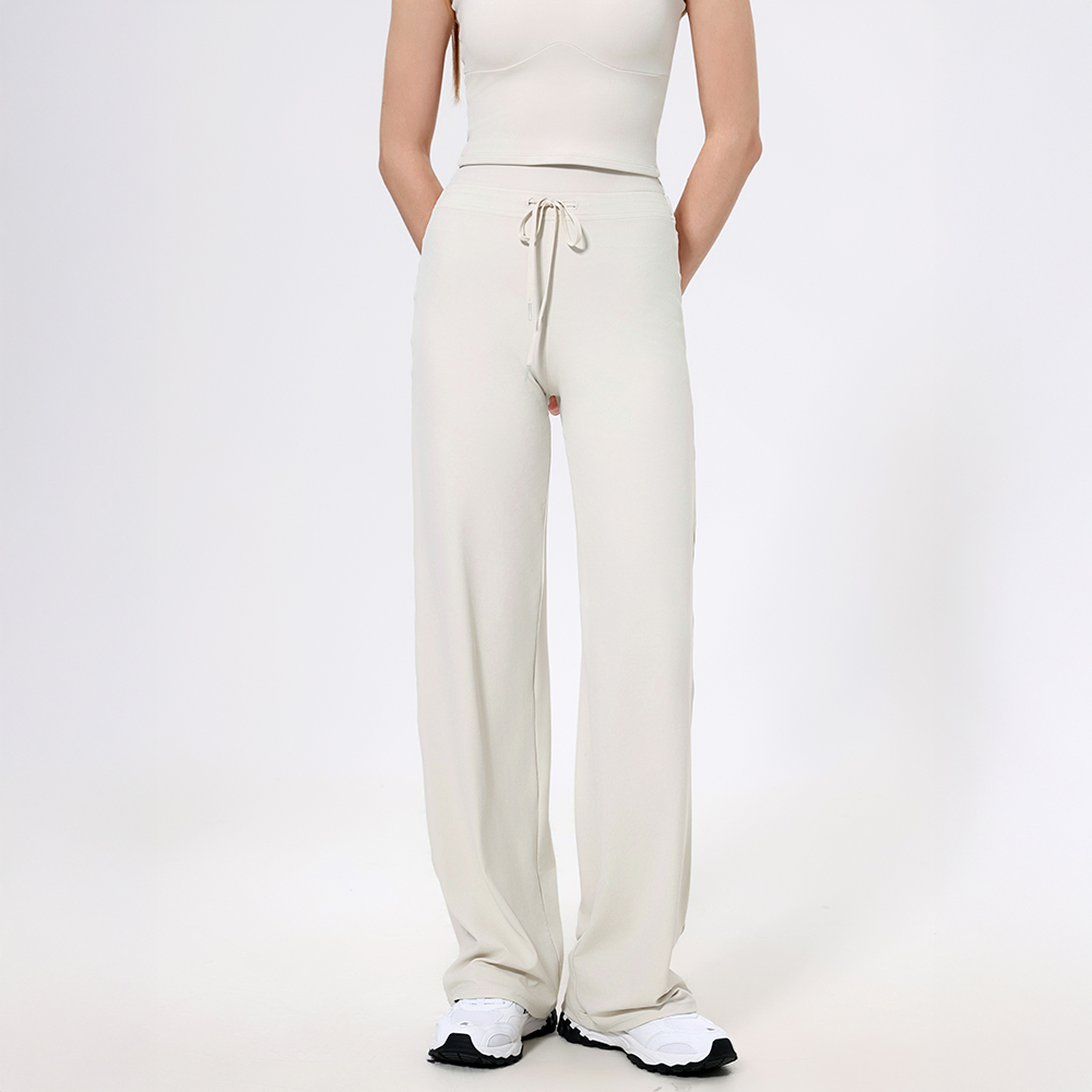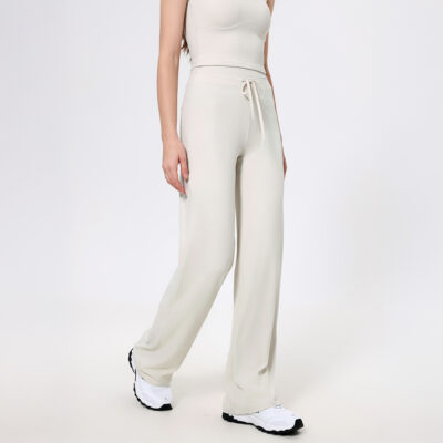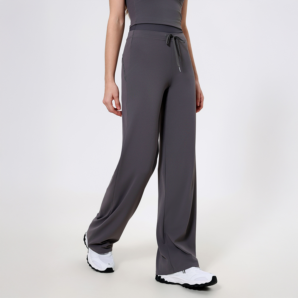 - High-waisted design with an elastic waistband and drawstring below for adjustability
