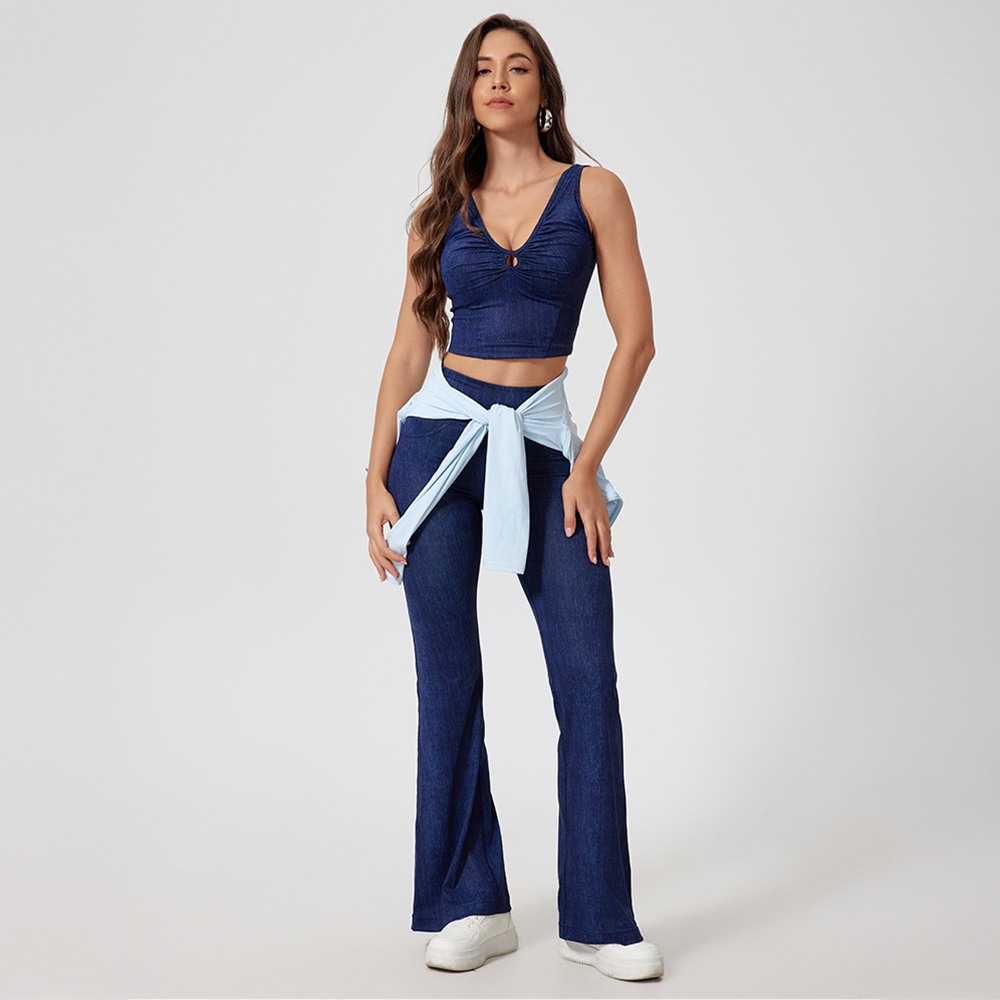 - Pairs with High Waisted Denim Flared Pants