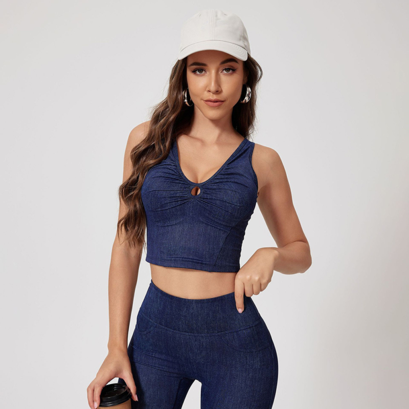 This versatile and stylish cropped tank top features a flattering keyhole detail at the center, with bra pads attached.