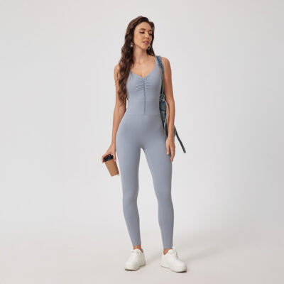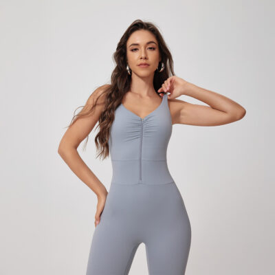 This zip jumpsuit makes put-on at ease, without sacrificing its aesthetic look and functionalities.The eye-catching pleated design makes it suitable for all your sporty occasions.