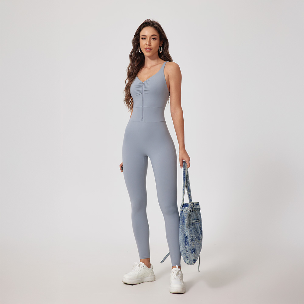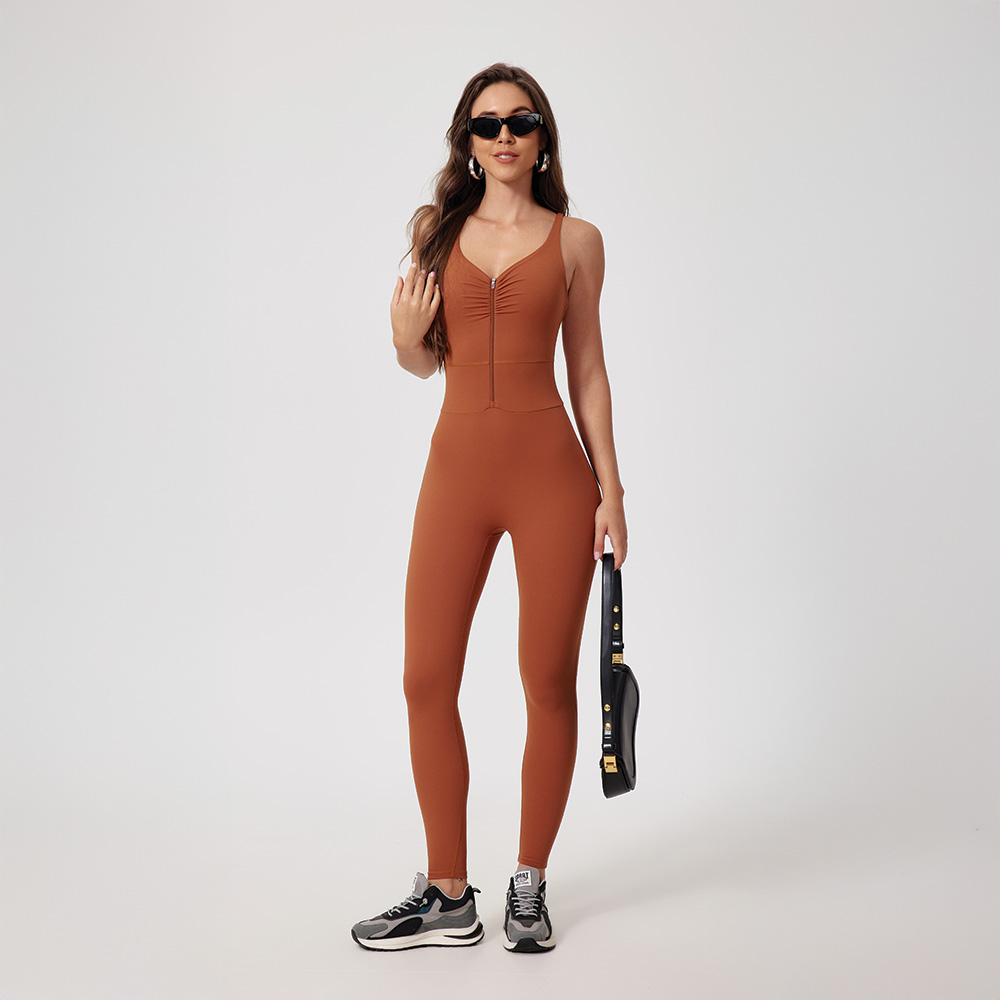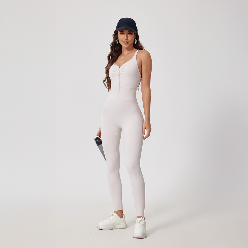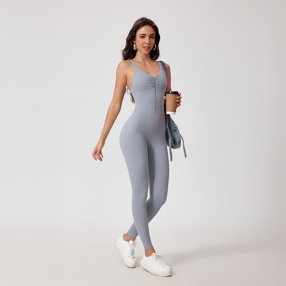 This zip jumpsuit makes put-on at ease, without sacrificing its aesthetic look and functionalities.The eye-catching pleated design makes it suitable for all your sporty occasions.