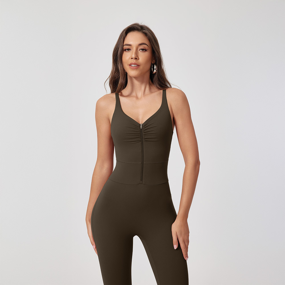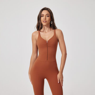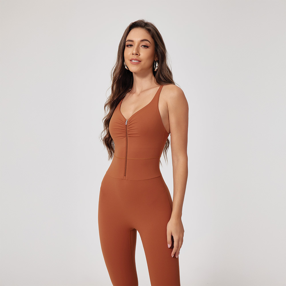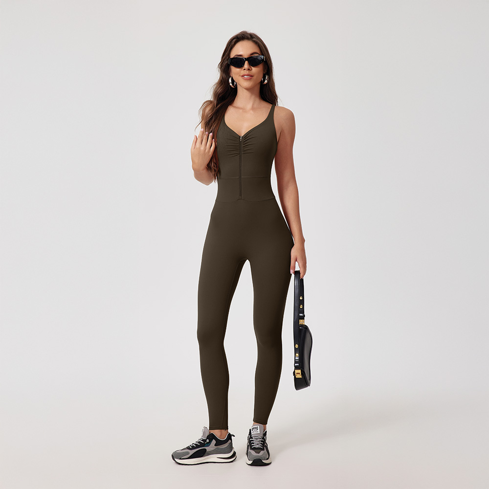 This zip jumpsuit makes put-on at ease, without sacrificing its aesthetic look and functionalities.The eye-catching pleated design makes it suitable for all your sporty occasions.
