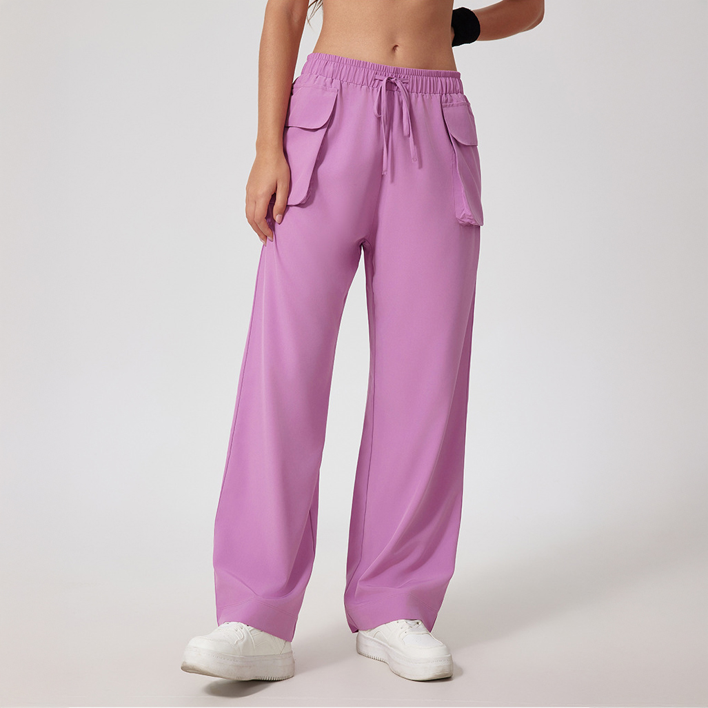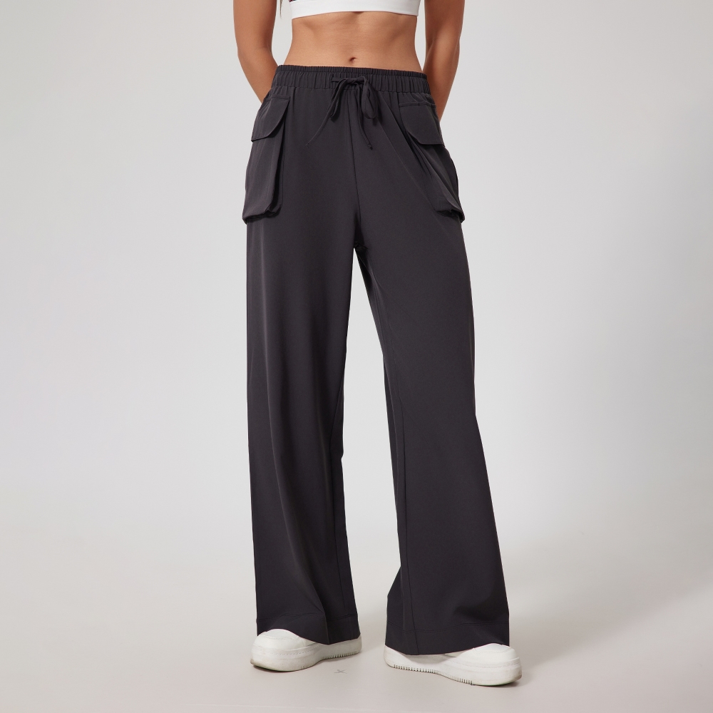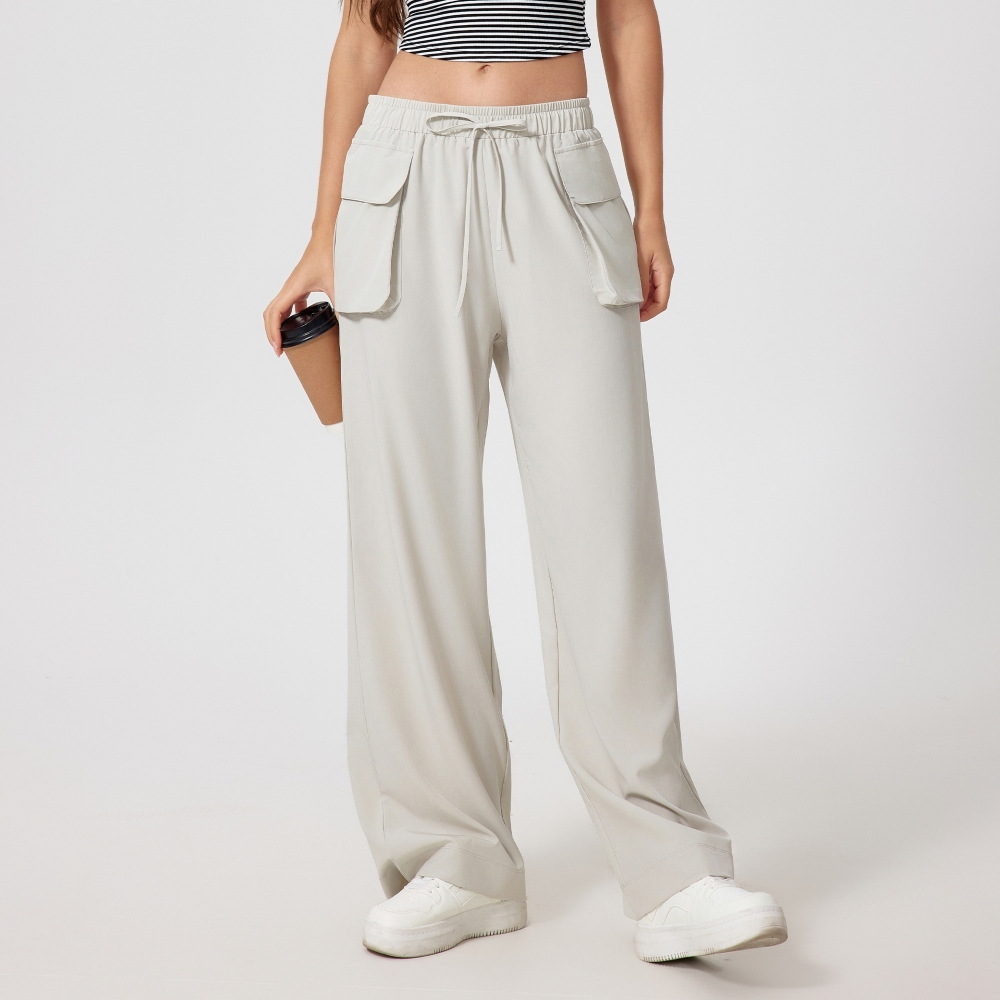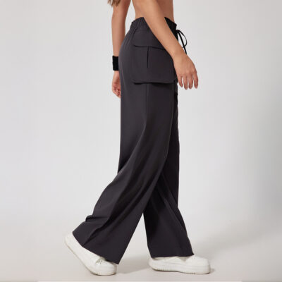 These versatile and stylish cargo pants feature a high-waisted, wide-leg silhouette with a drawstring waist for a comfortable, adjustable fit.