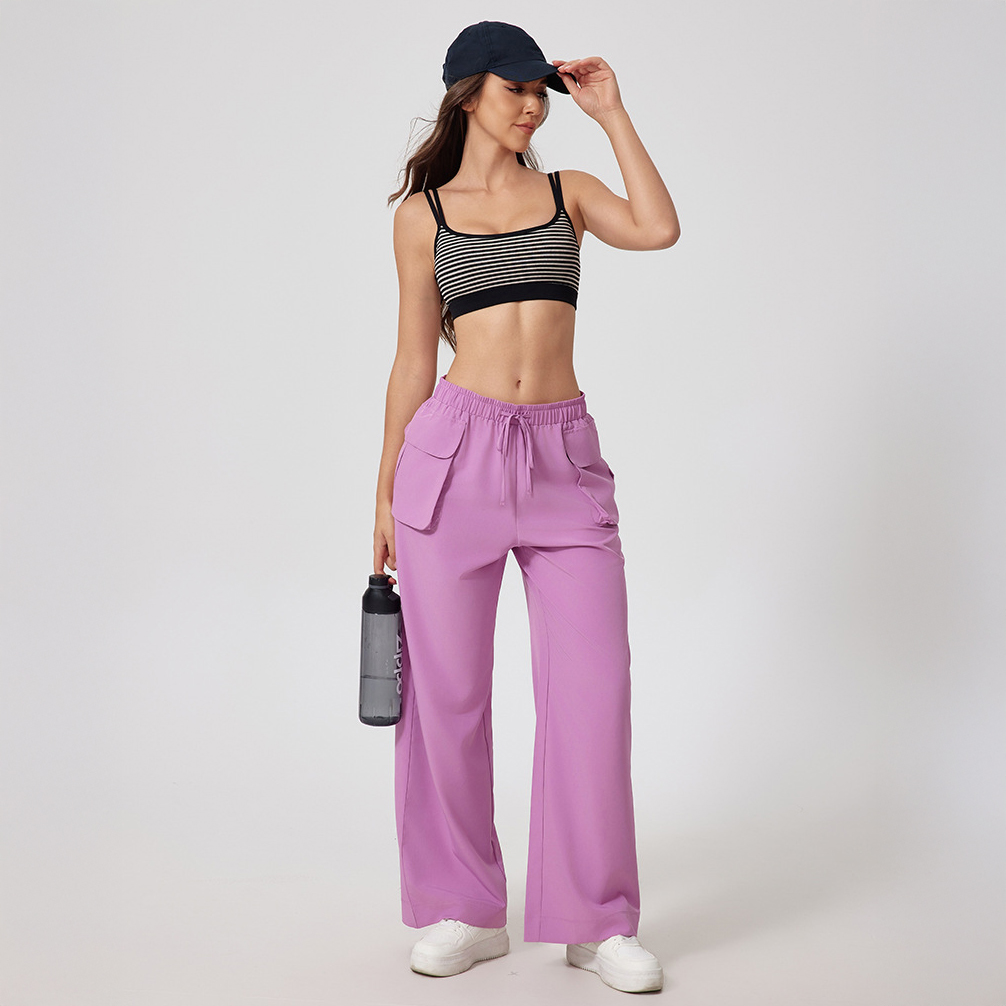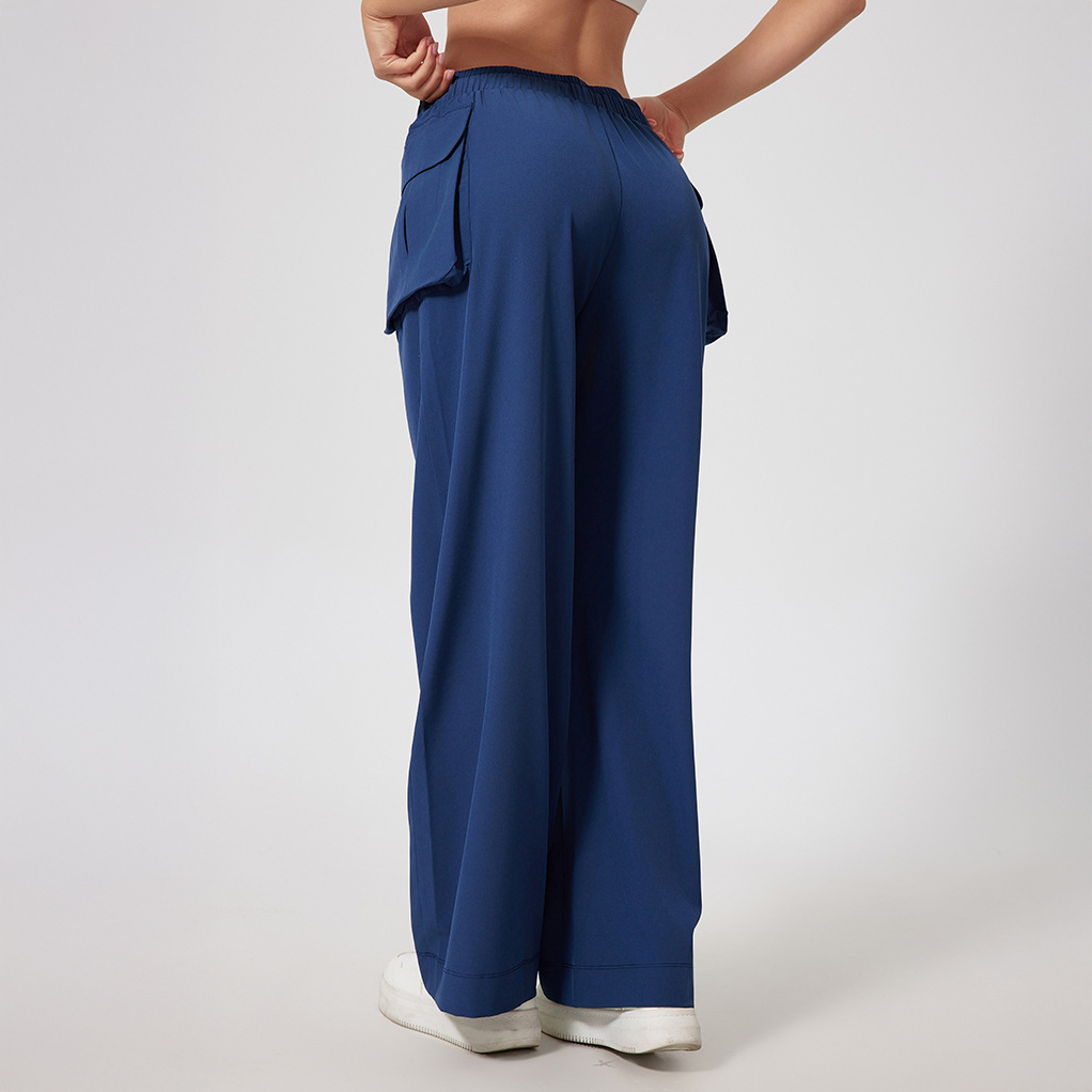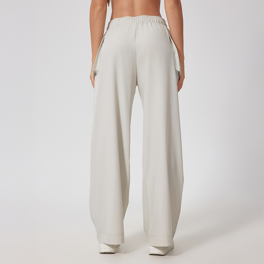 These versatile and stylish cargo pants feature a high-waisted, wide-leg silhouette with a drawstring waist for a comfortable, adjustable fit.