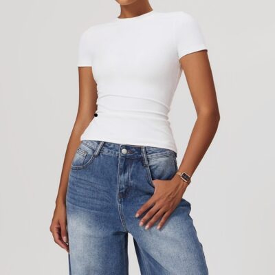 The Zeagull Basic Top is your ultimate basic top staple piece. It has a high neckline, slightly flared bottom, short sleeves of the perfect length, perfect for you to feel and look the best during your intense workout sessions.