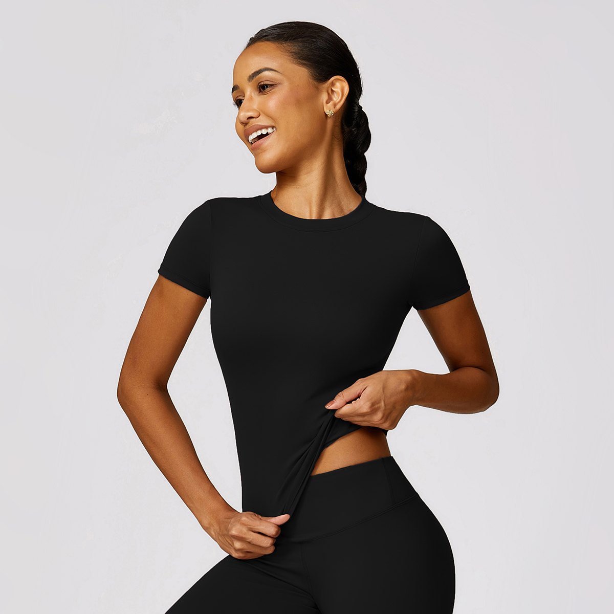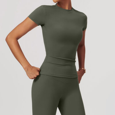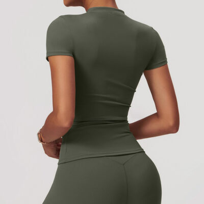 The Zeagull Basic Top is your ultimate basic top staple piece. It has a high neckline, slightly flared bottom, short sleeves of the perfect length, perfect for you to feel and look the best during your intense workout sessions.